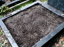 Закончив с первой могилой, мы приступили ко второму месту захоронения: засыпали новой землёй заранее прополотый цветник.
